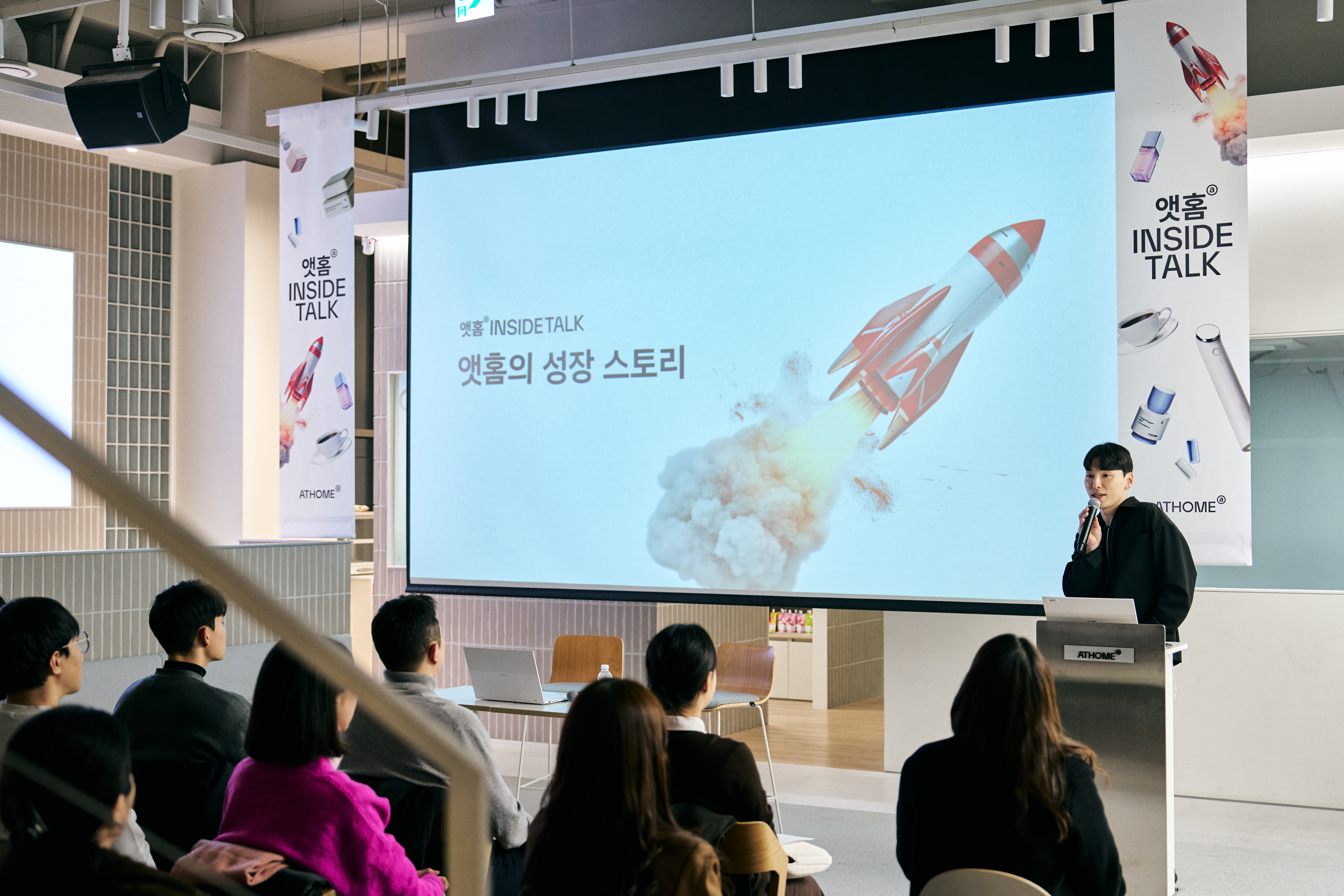 이번 행사는 글로벌 뷰티 시장에서 본격적인 확장을 준비 중인 앳홈이 추구하는 문제 해결 방식과 그동안 축적해온 성공 방정식을 리더십의 목소리로 전하기 위해 마련됐다. 프라이빗 에스테틱 브랜드 톰(THOME)의 전략을 보다 깊이 있게 소개하며, 앳홈에 관심 있는 우수 인재들에게 향후 방향성을 공유하는 자리이기도 했다.