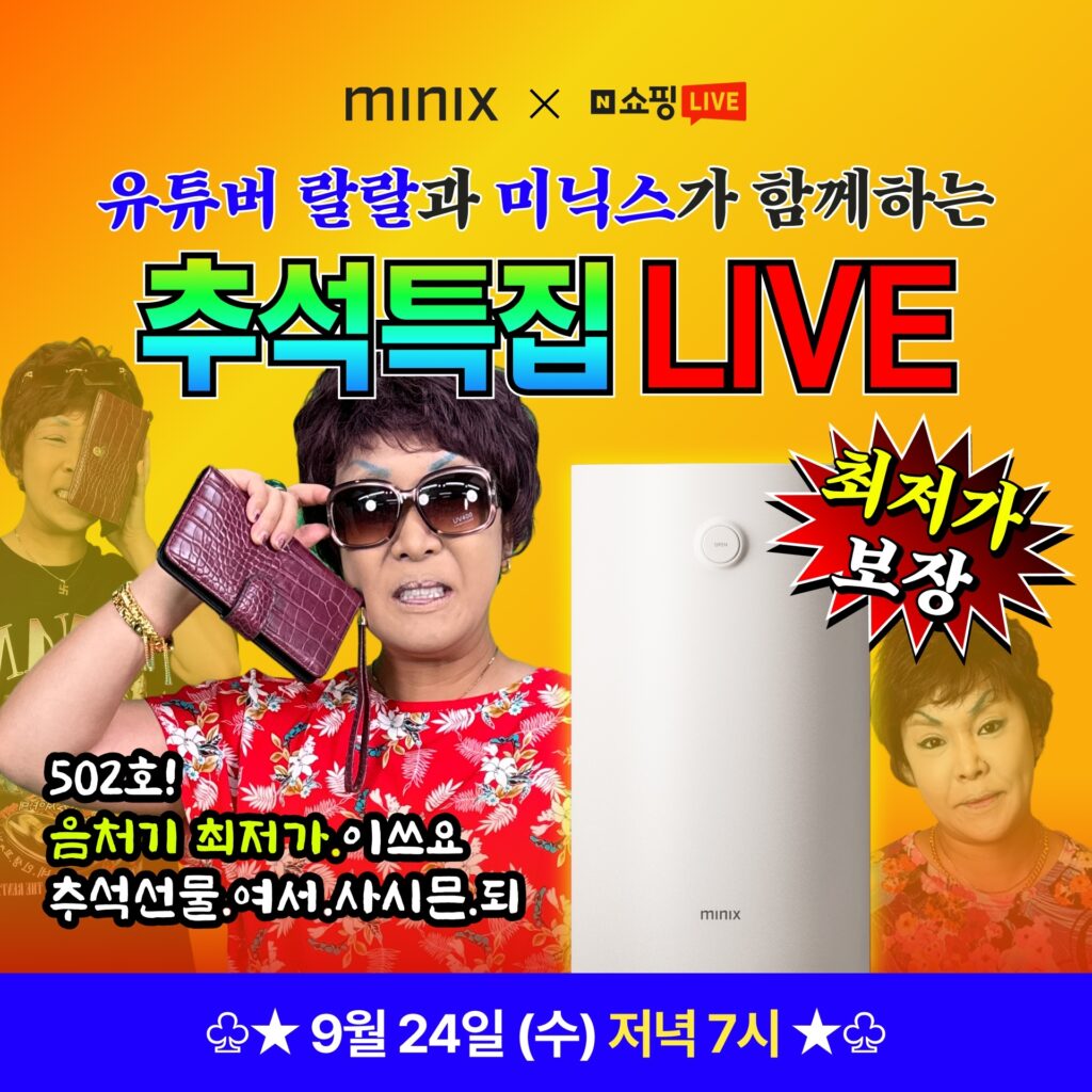 앳홈(대표 양정호)의 공간의 가능성을 넓히는 가전 브랜드 미닉스(Minix)가 다가오는 추석을 맞아 196만 구독자를 보유한 인기 유튜버 ‘랄랄’(본명 이유라)과 함께 특별 라이브 방송을 진행한고 24일 밝혔다. 이번 방송은 이날 저녁 7시부터 70분간 네이버 쇼핑라이브와 랄랄 유튜브 채널에서 동시에 생중계된다.